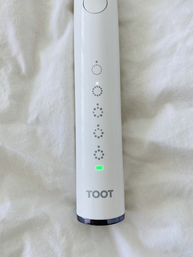 Zoals je kan zien geeft de tandenborstel ook 'licht' wanneer hij aan staat. Hierdoor kan je gemakkelijk zien hoe vol hij nog is. Ook zie je hierdoor op welke stand je tandenborstel staat. Door op de knop boven in te drukken kun je wisselen van bijvoorbeeld stand 1 naar 2.