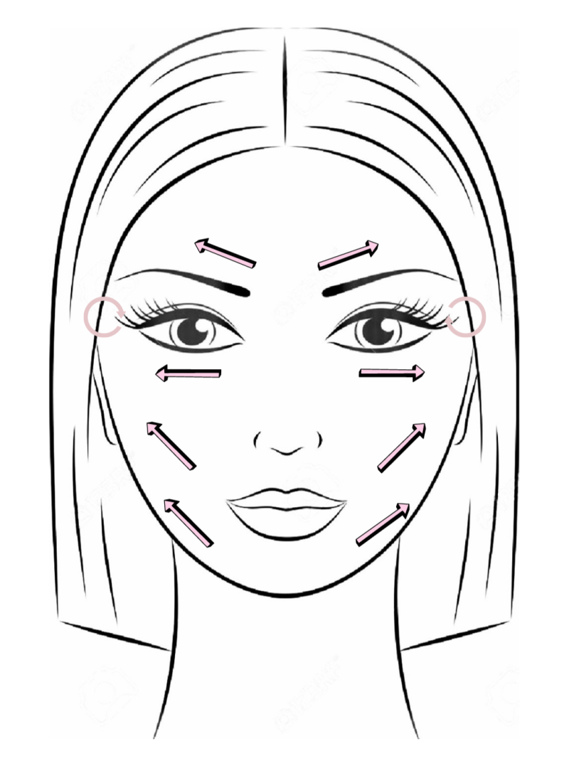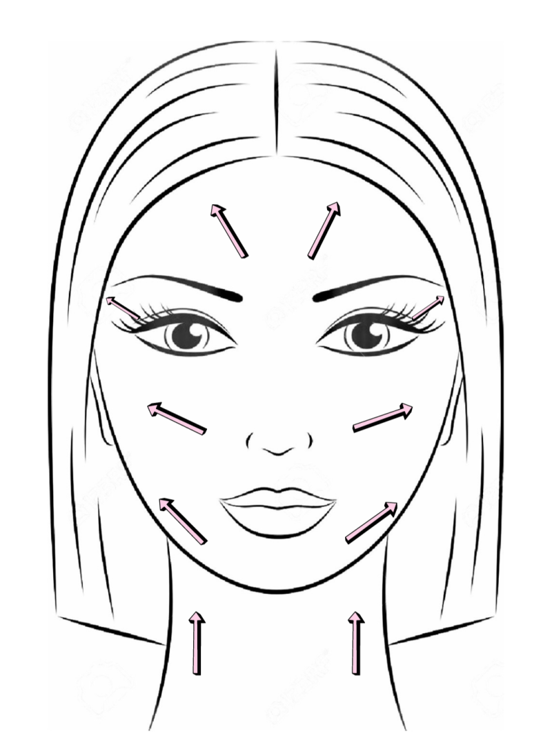 Hiernaast heb ik weer aangegeven welke richtingen je kan gebruiken met je face tool. De 'Rose quartz gua sha' is wel een face tool die je alleen in stroken kan gebruiken. Ronddraaiende bewegingen gaat eigenlijk zo goed als niet. Wederom zijn dit niet dé bepaalde bewegingen die je móet maken met deze face tool. Het zijn voorbeelden en probeer vooral wat anders!