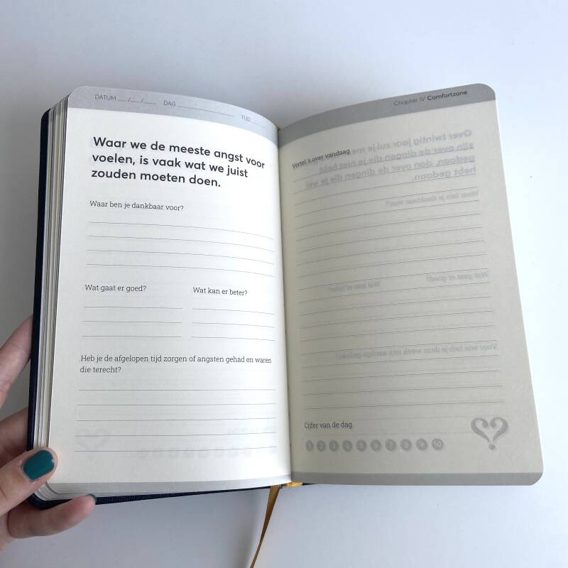 Wanneer je het boek openmaakt wordt het meteen duidelijk hoe het boek in elkaar zit. De verschillende hoofdstukken laten je elke keer nét een ander stukje van jezelf zien en ontdekken/ontwikkelen! Ik vond het ook superleuk (en ook wel een beetje bijzonder) om de eerst bladzijde te schrijven. Het is echt een opluchting en je kan er écht je ‘ei in kwijt’. Het schrijft zo gemakkelijk en het laat je jezelf echt beter leren kennen. Het is supermooi om je op deze manier verder (persoonlijk) te ontwikkelen. Ik ben echt een fan!