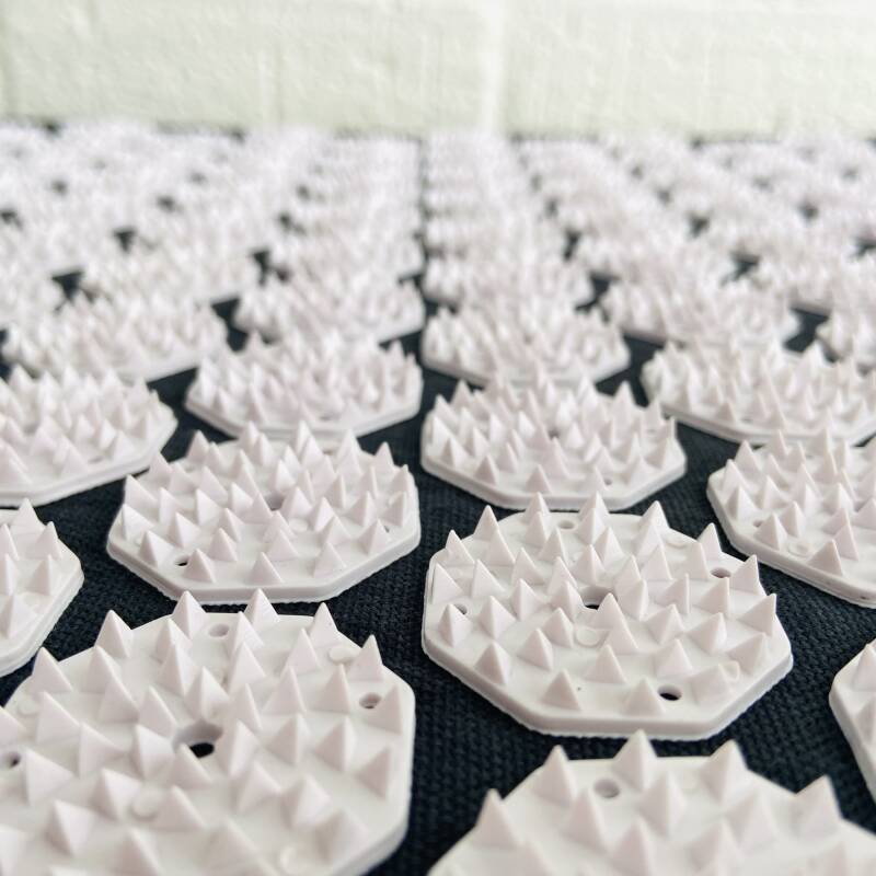 - De spikes zijn gemaakt van ABS plastic, wat veilig is voor de gezondheid. De mat zelf is gemaakt van katoen.