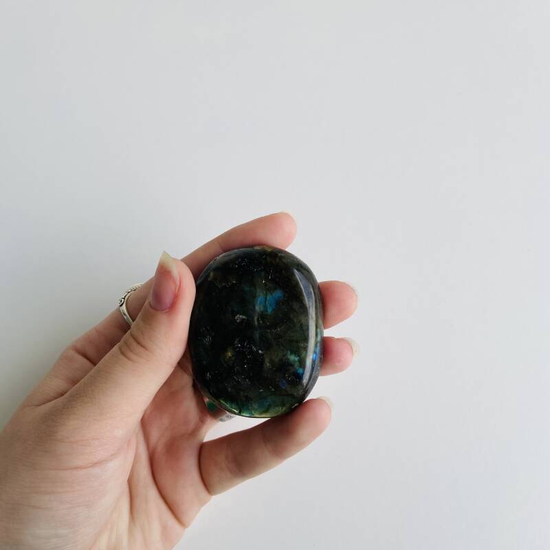 Dit is ook een prachtige steen van The Mimi Company! Het heeft de grootte van een knuffelsteen en is daardoor perfect om in je hand te houden. Wat ik ook het mooie vind van labradoriet is de prachtige weerspiegeling wanneer je hem kantelt. Hierdoor zie je alle kleuren van de regenboog voorbij komen, van blauw tot groen tot geel of paars. Ik kan uren naar deze steen blijven kijken en draaien, om alle kleuren goed te kunnen zien! ð